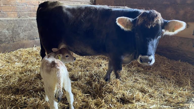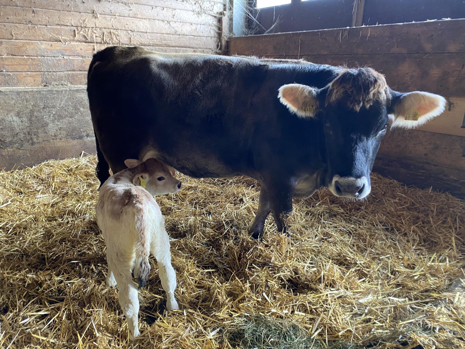 Natürich Hornlose Mutterkuh mit Natürlich Hornlosem Kuhkalb